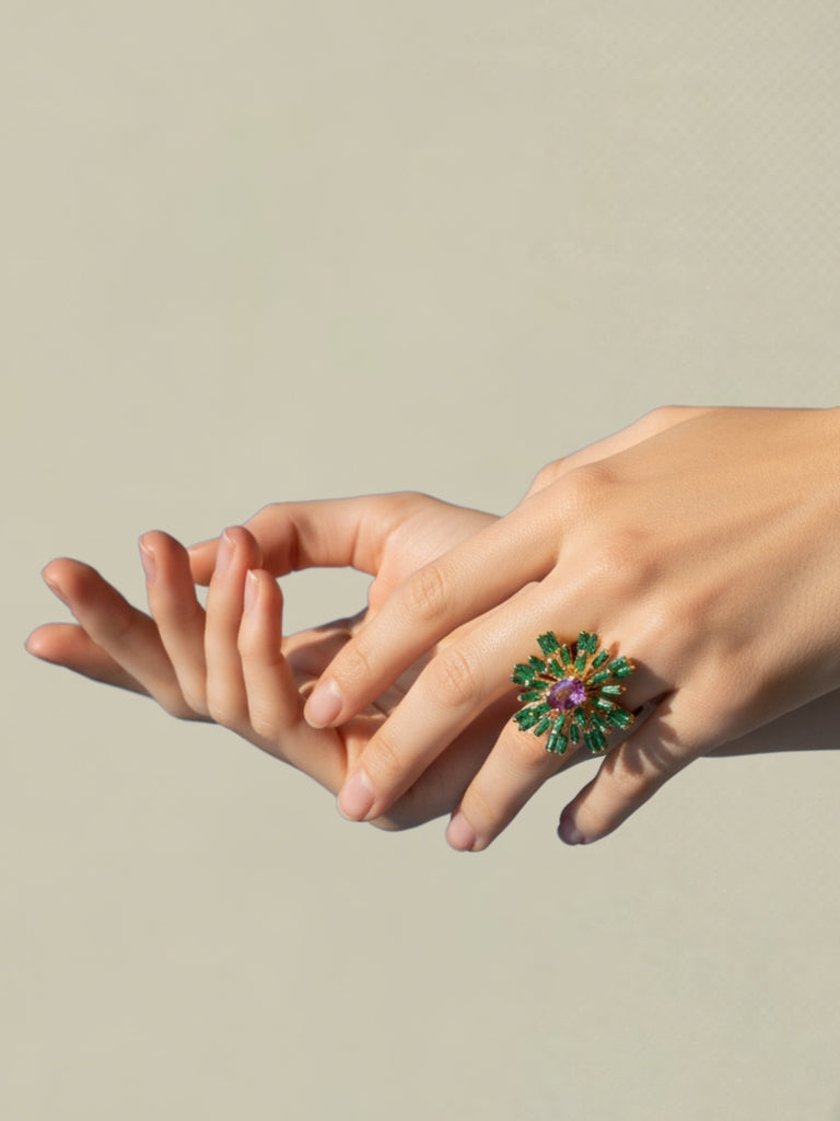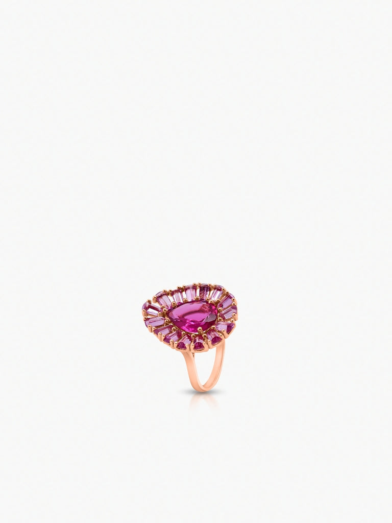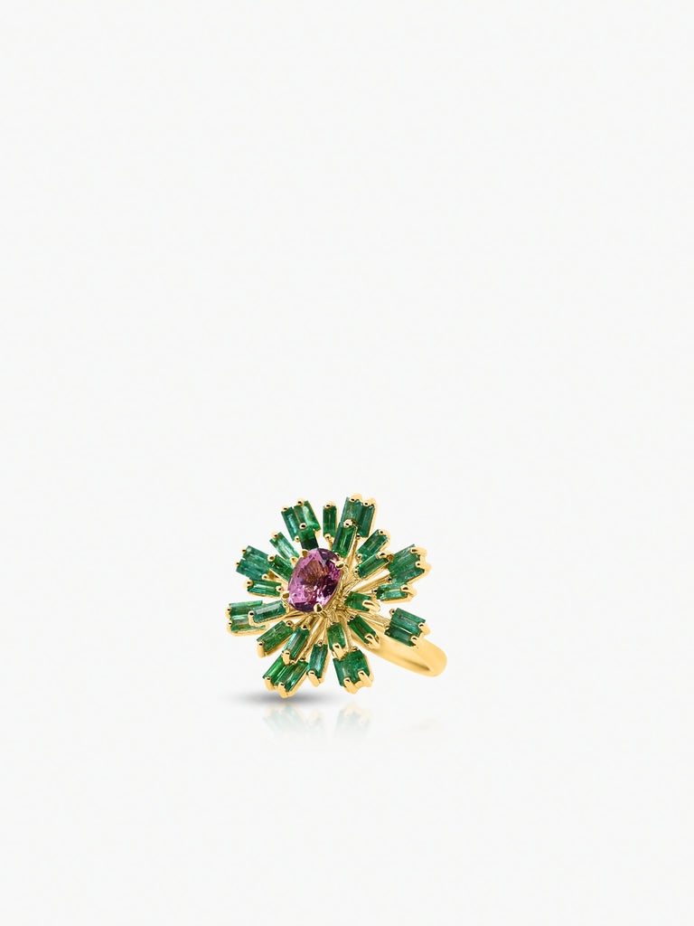 PINK TOURMALINE & GREEN SAPPHIRE COCKTAIL RING